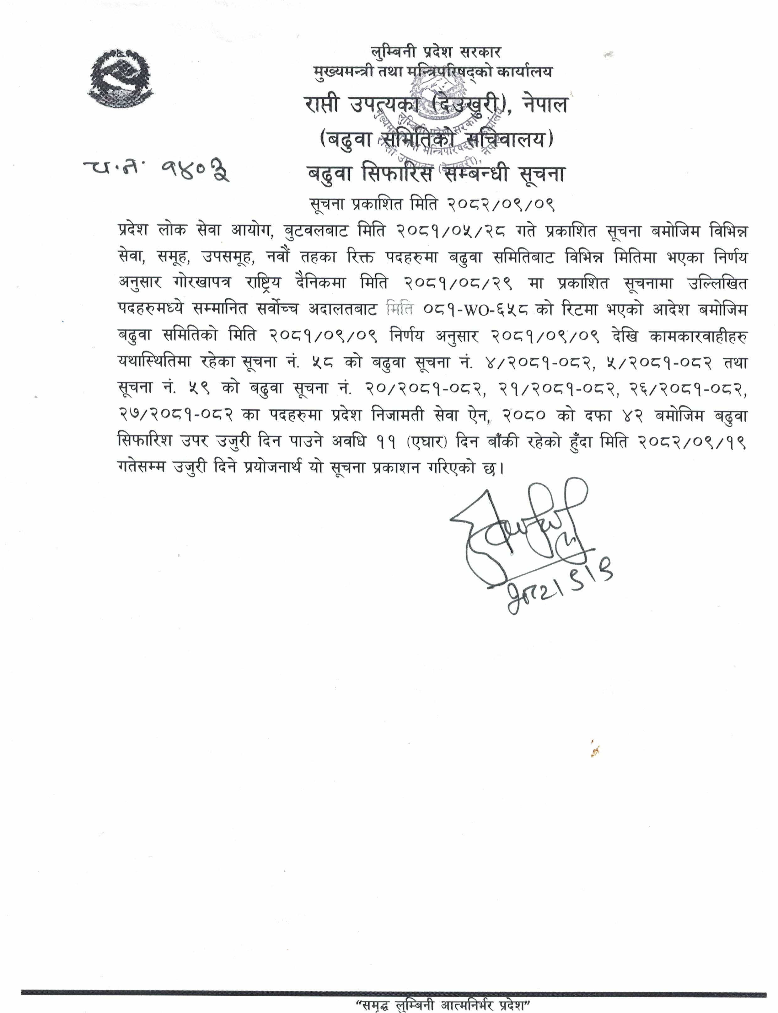 बढुवा सिफारिस सम्बन्धी सूचना।