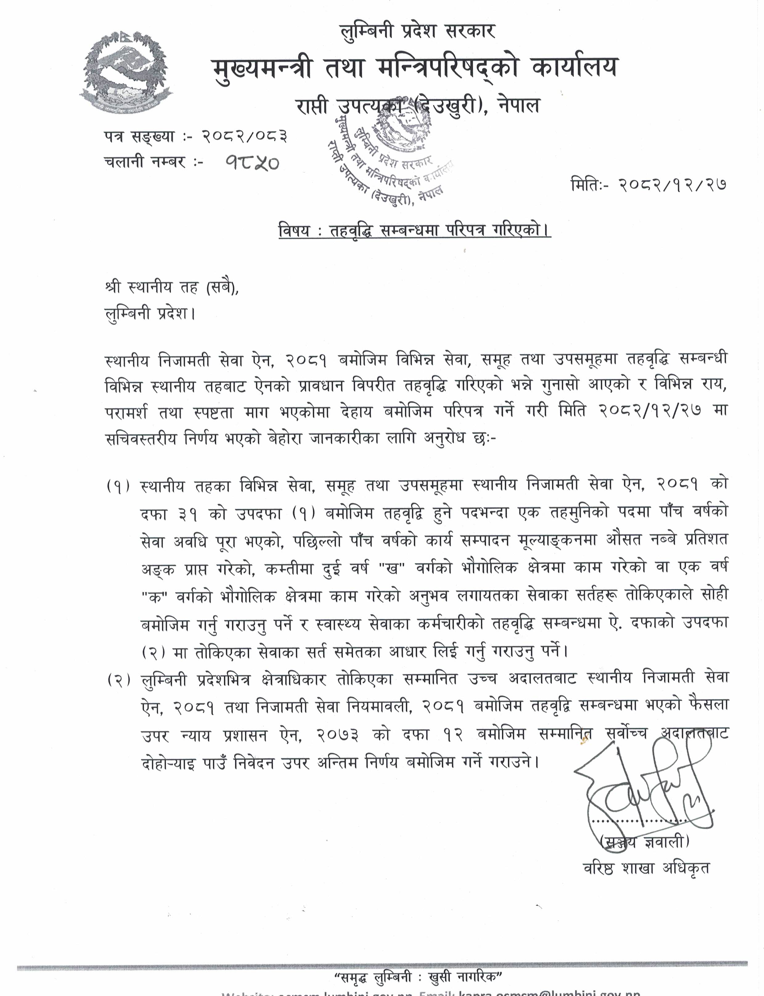 मिति २०८२।०३।१८ को तहवृद्धिका लागि आवेदन फारम पेश गर्ने सम्बन्धी सूचना ।